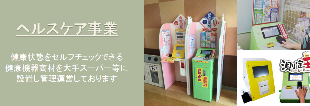 近年の健康ブームの中、弊社では健康状態(血管年齢、元気度)を気軽にセルフチェックできる健康機器商材(コイン式測定器)を、